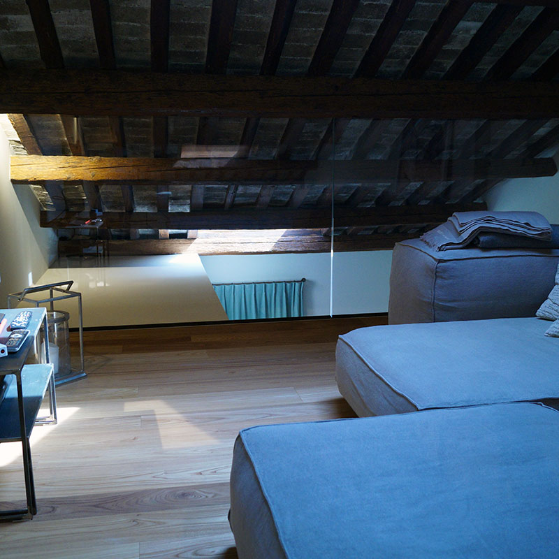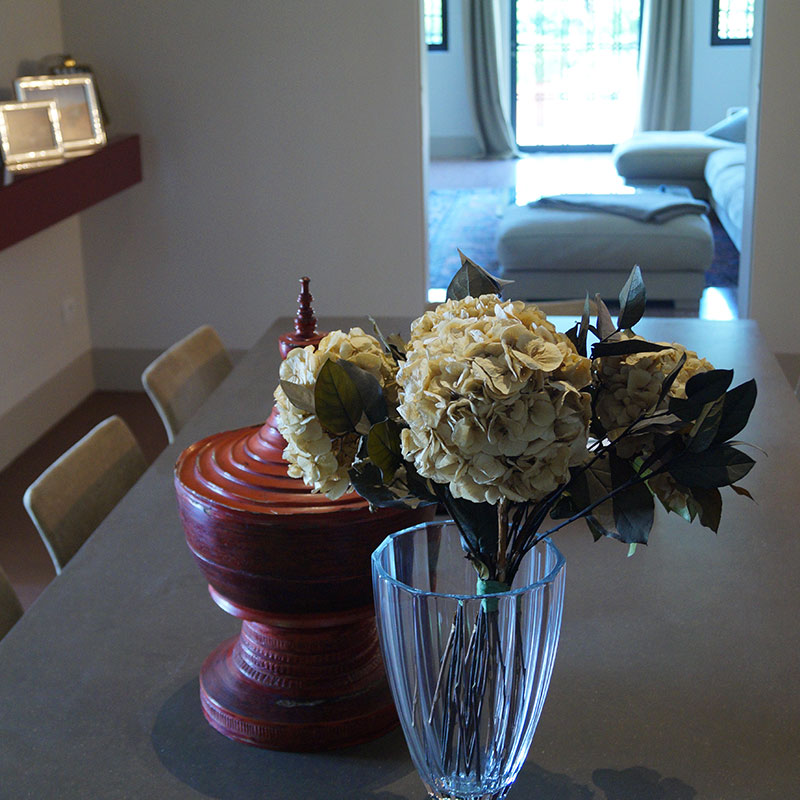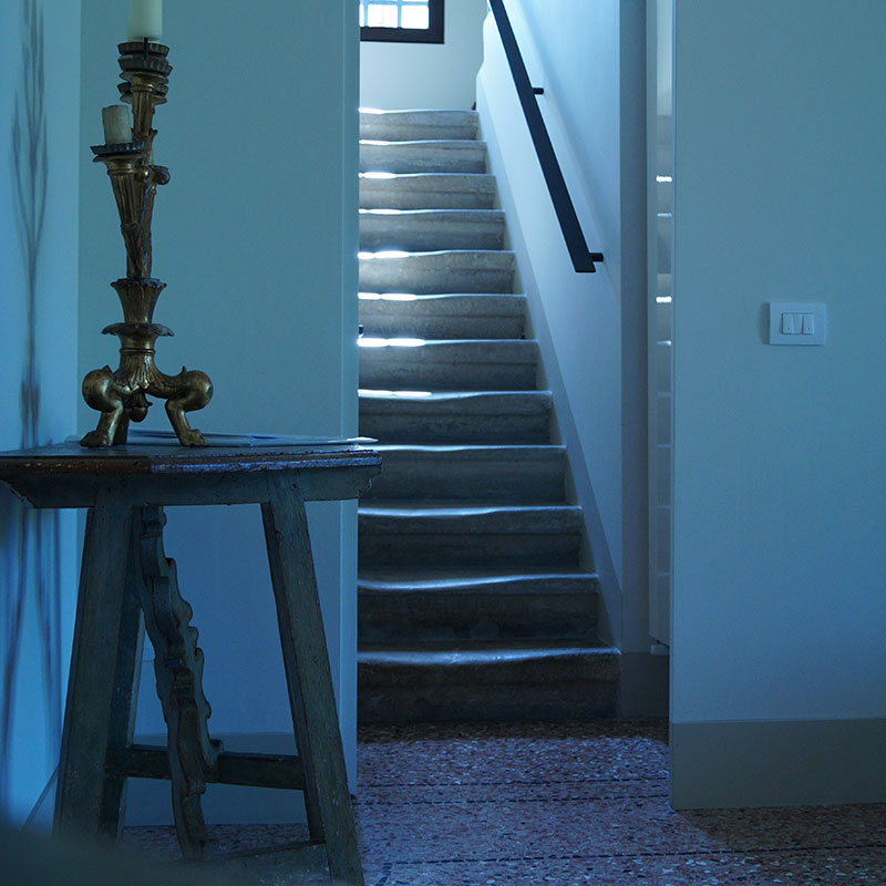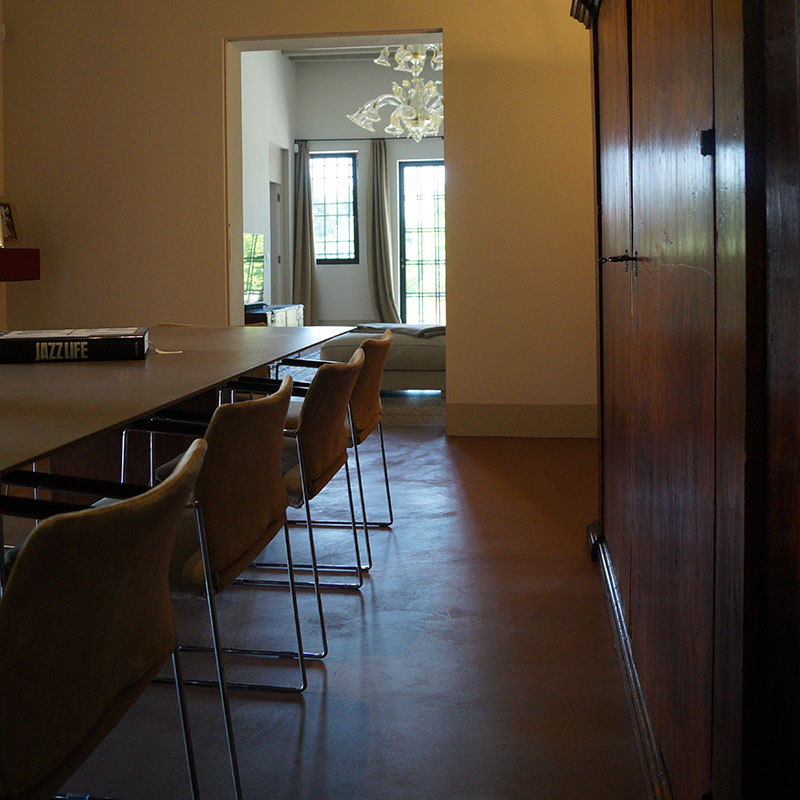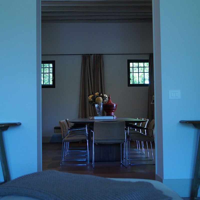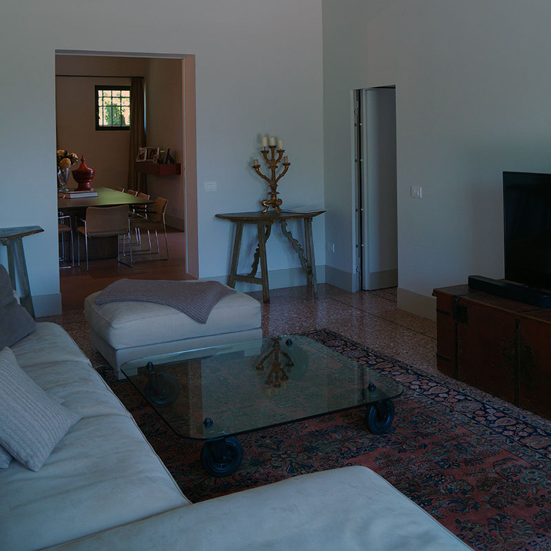 Il progetto di ristrutturazione, in particolare di interior design della villa, è stato eseguito ponendo particolare attenzione al recupero di alcuni dei suoi elementi più rappresentativi, quali ad esempio travi a soffitto, scalinate in sasso, antichi lampadari veneziani in vetro di Murano.