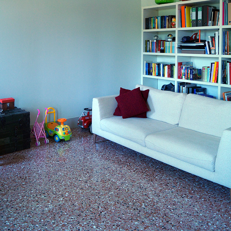 Per i pavimenti e le pareti sono state infatti riproposte antiche soluzioni come il terrazzo veneziano e il pastellone, rilette in chiave contemporanea come nel caso del nostro CoverCp a pavimento e a parete, ottenendo giochi chiaroscurali di particolare effetto estetico.